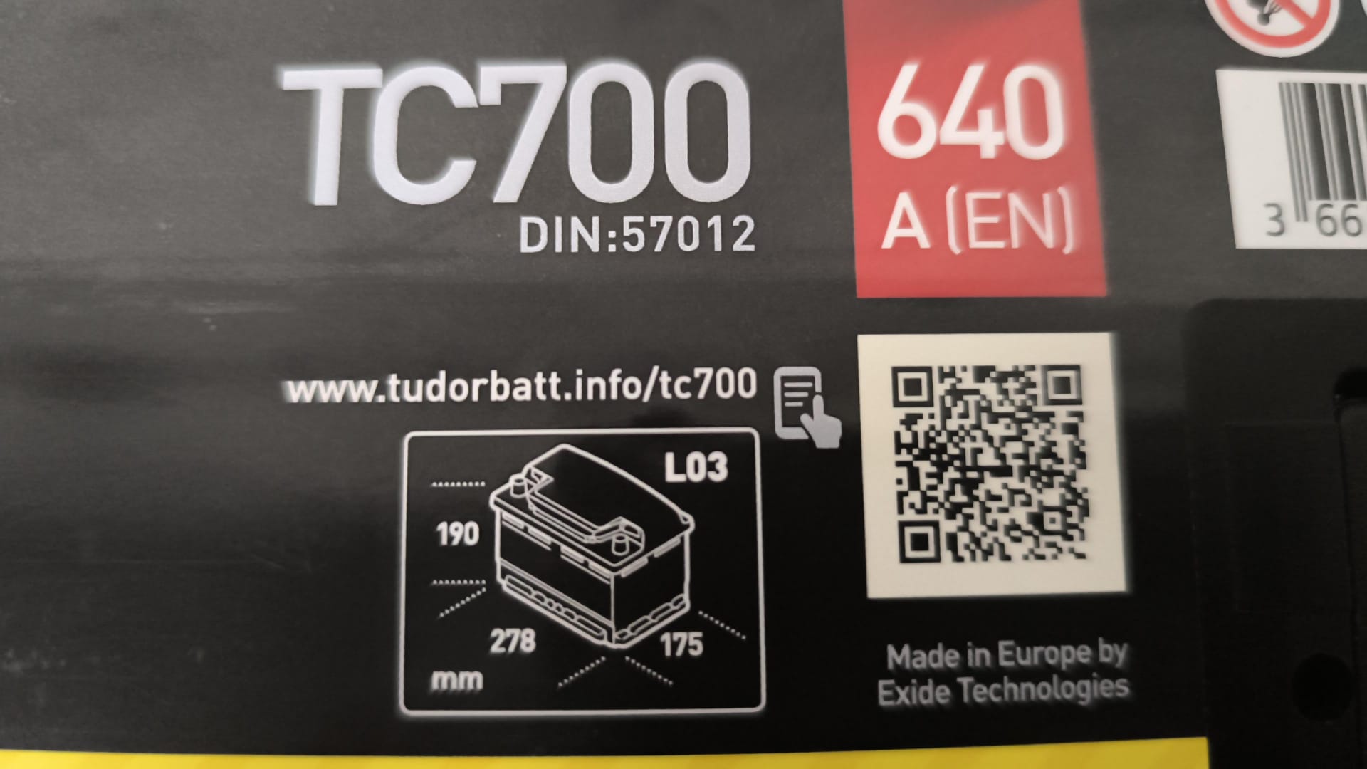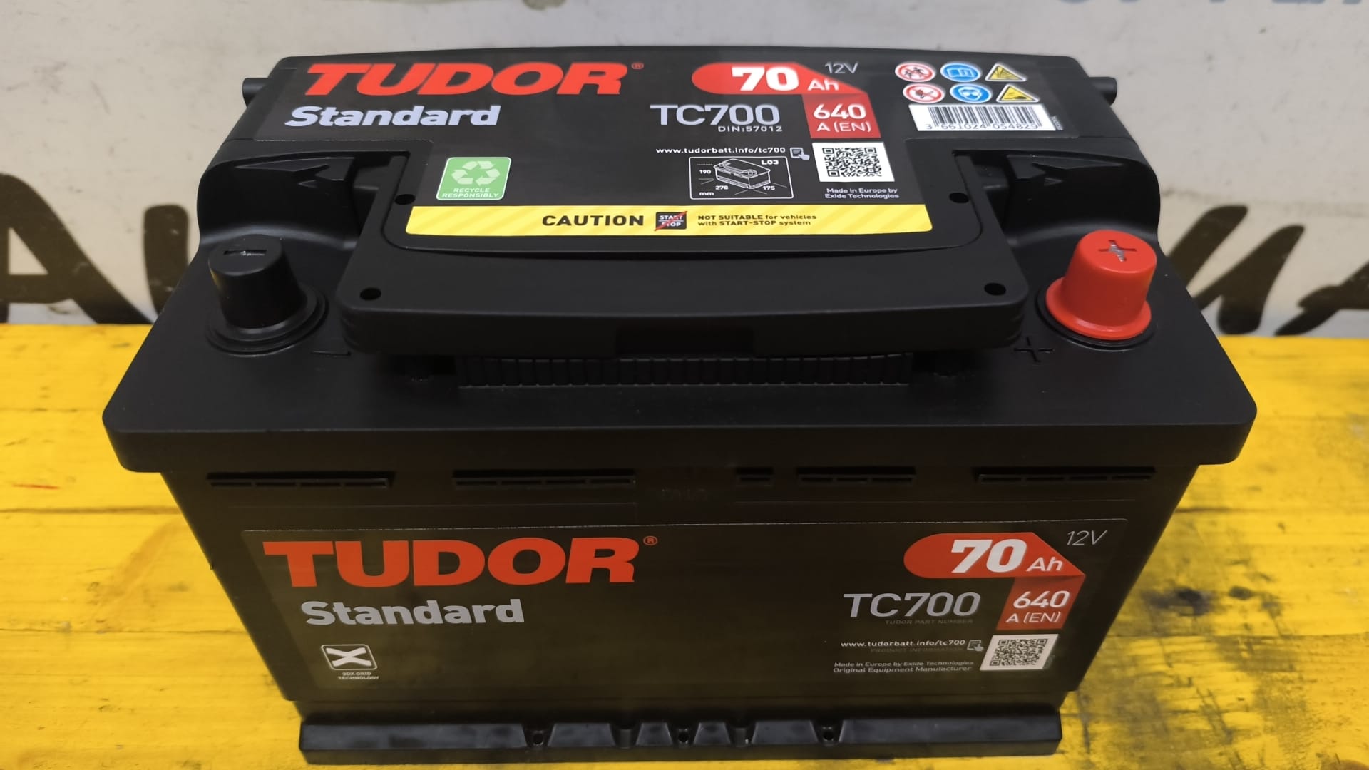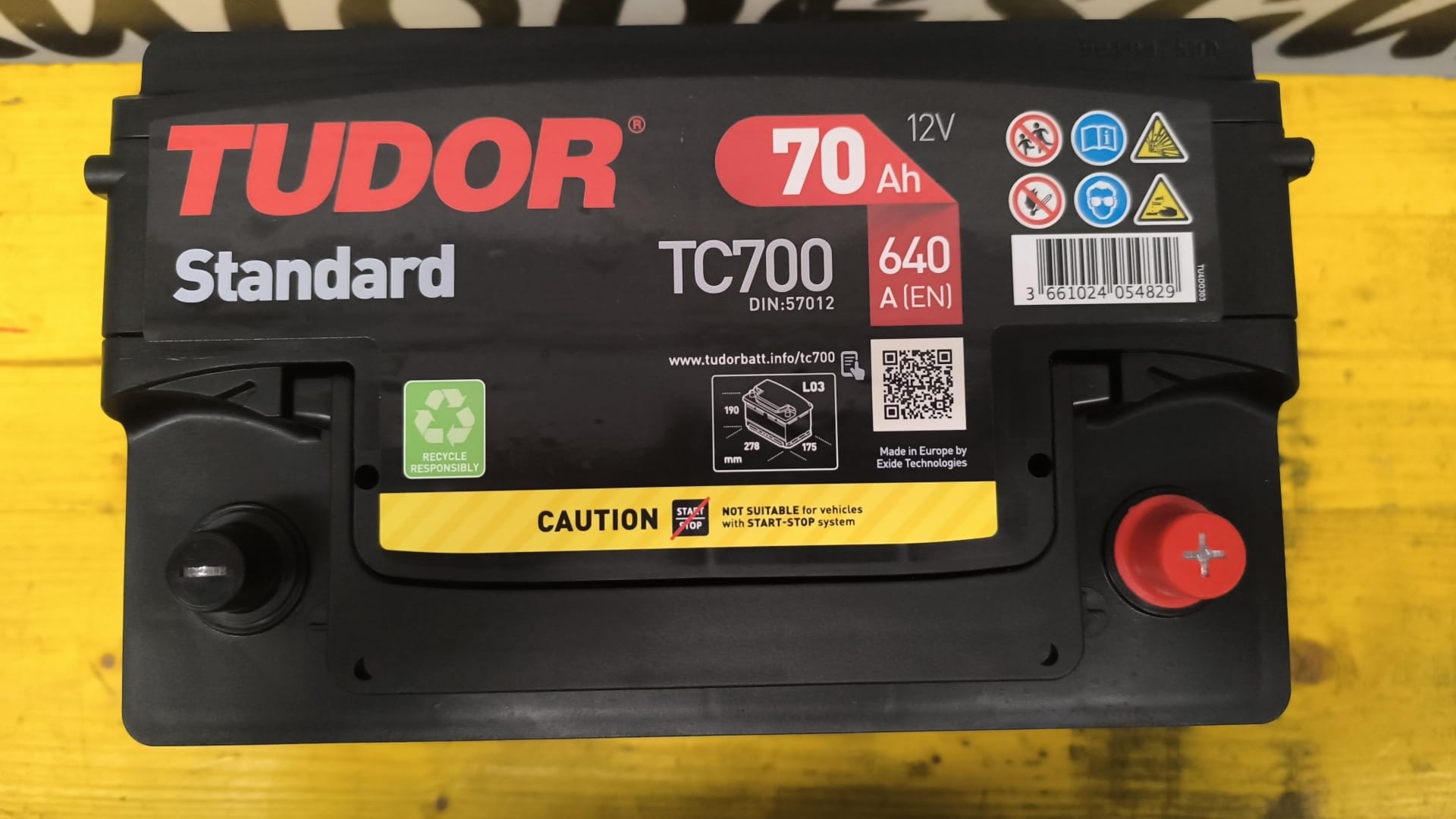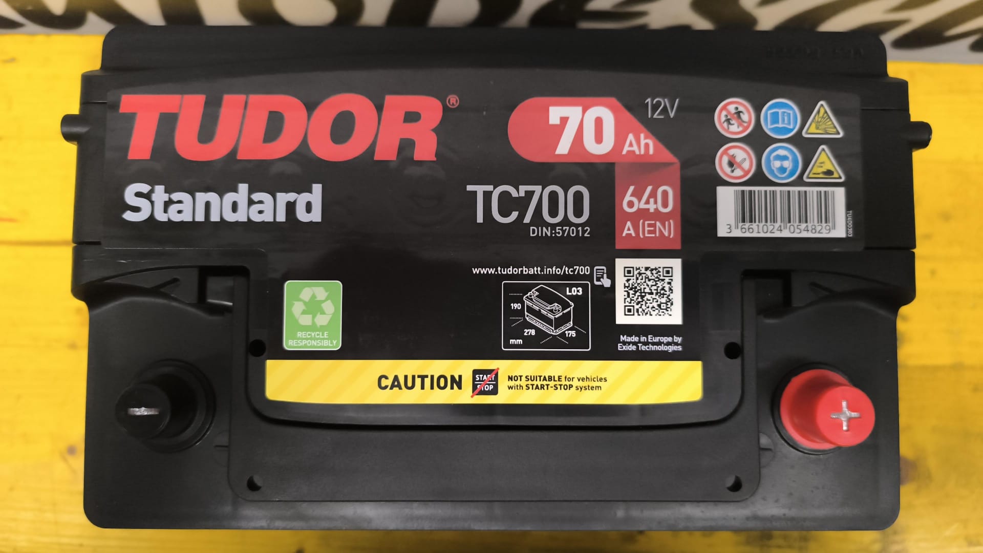 Se vende batería Tudor TC700 de 70Ah 640A (potencia de arranque) nueva. Es positivo (+) a la derecha y negativo (-) a la izquierda.