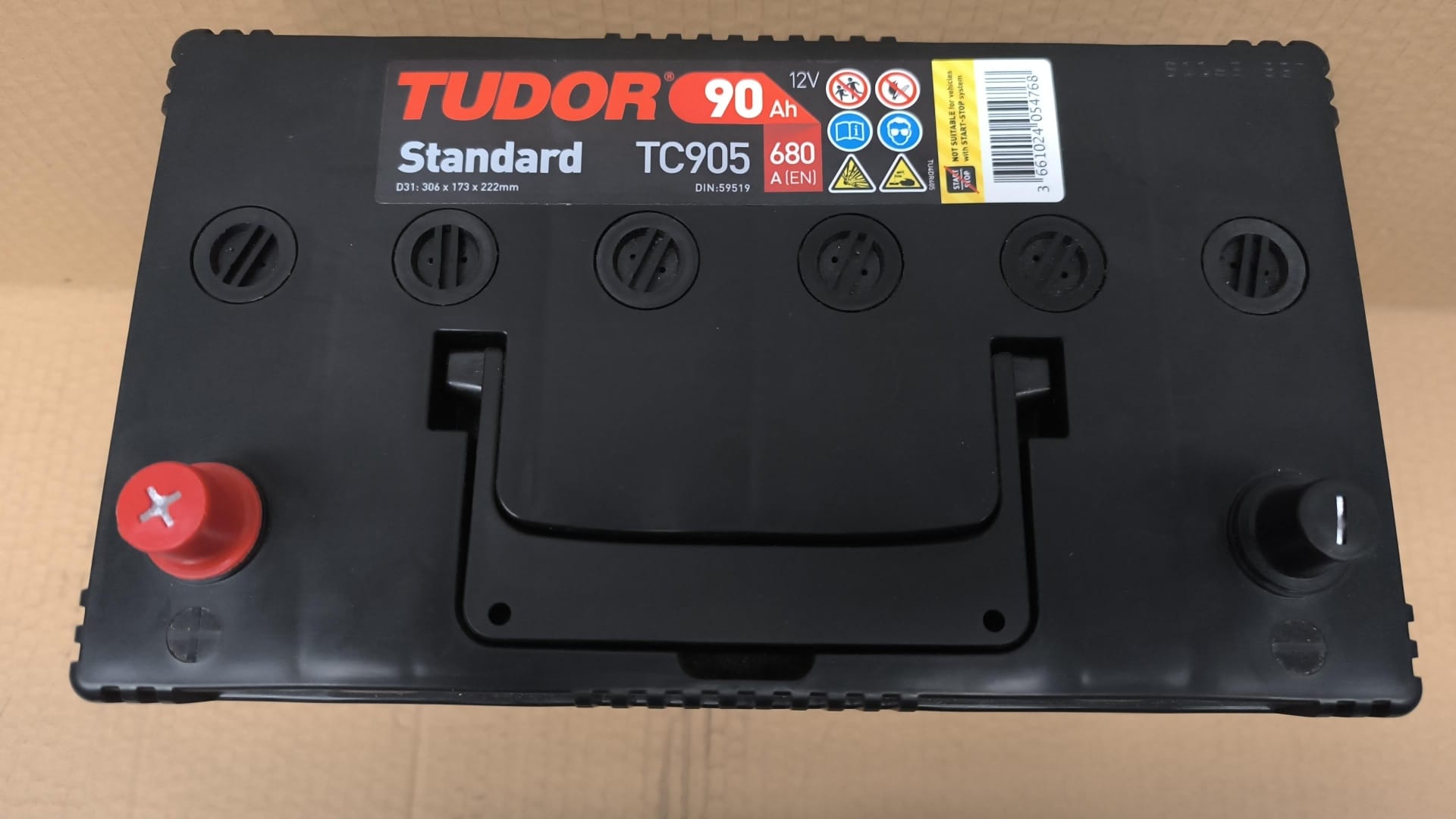 Se vende batería Tudor TC905 de 90Ah 680A (potencia de arranque) nueva. Para todoterrenos. Es positivo (+) a la izquierda y negativo (-) a la derecha